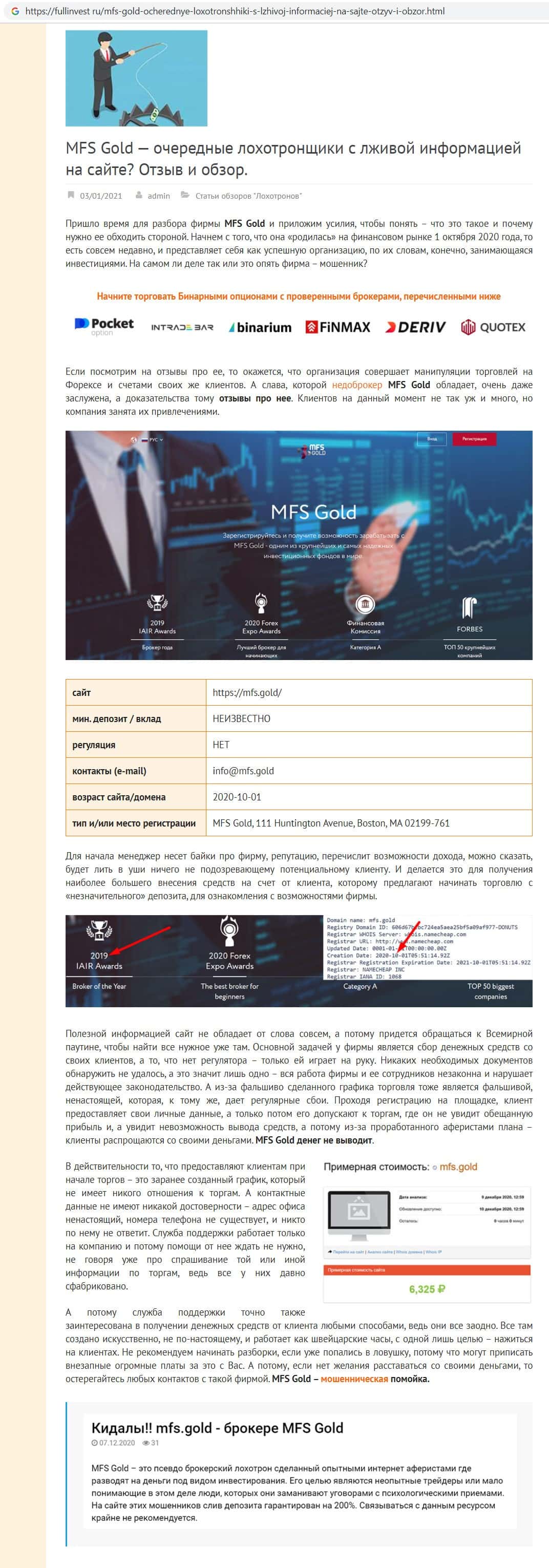 fullinvest ru - сайт с информацией и отзывами о кидалах MFS Gold