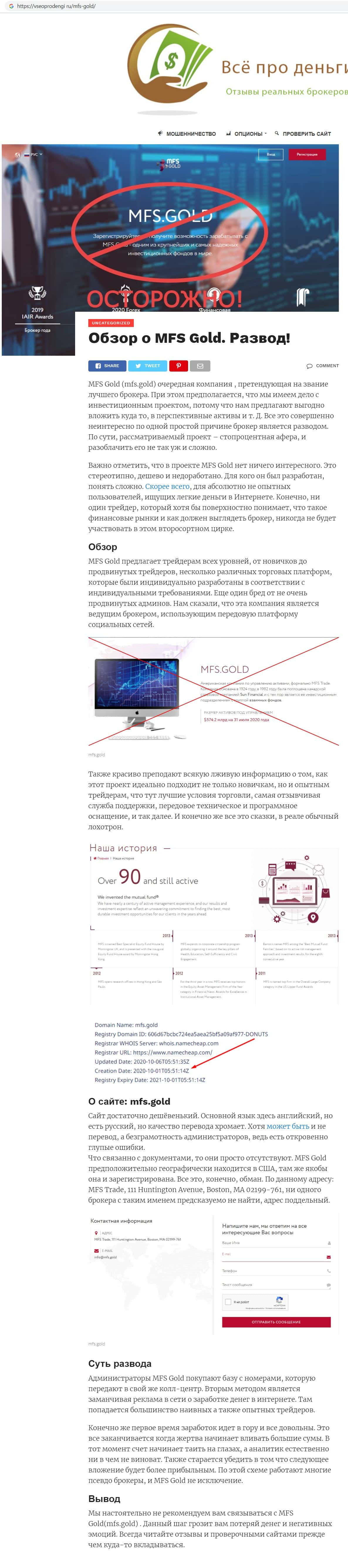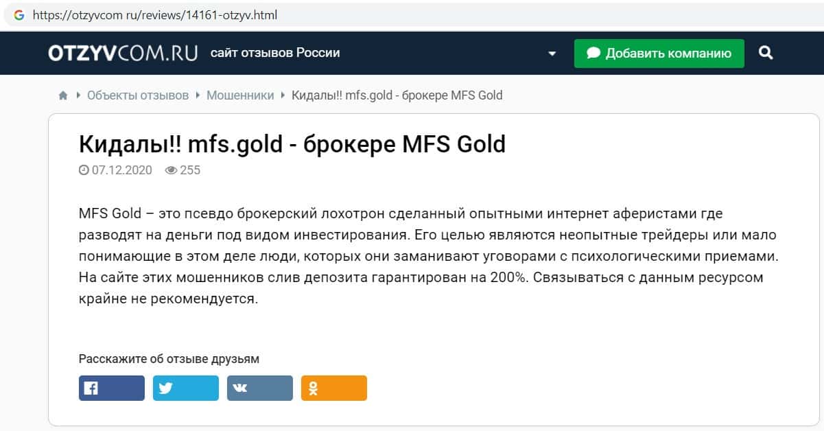 - Мнение интернет ресурсов о конторе мошенников MFS Gold
