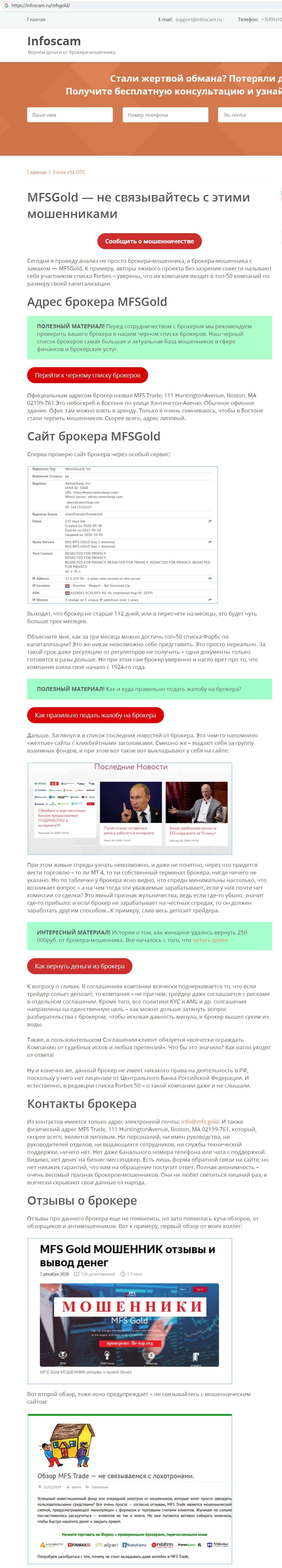 infoscam ru - сайт с информацией о разводлах MFS Gold