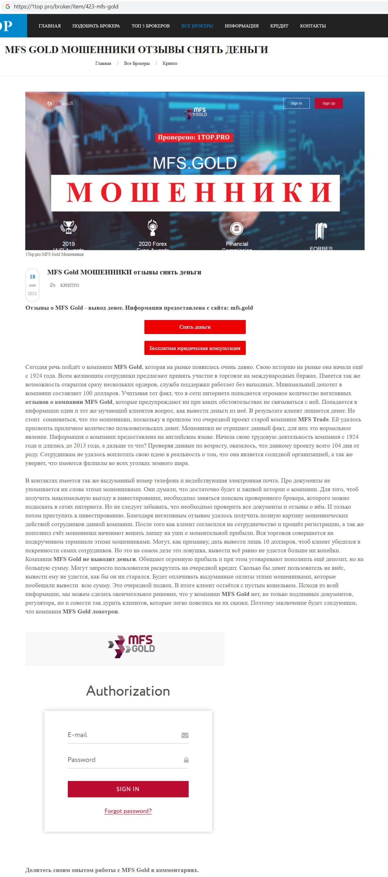 1top pro - сайт с информацией о махинаторах MFS Gold