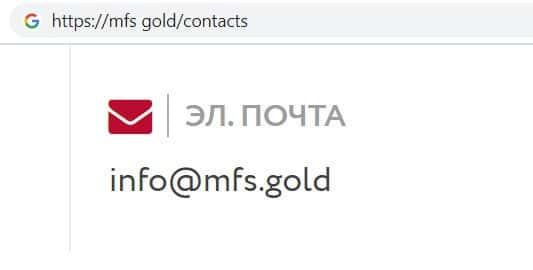 Компания разводил МФС Голд не указала контактного номера телефона. В качестве контактных данных фирма указала лишь адрес электронной почты. Электронная почта кидал: