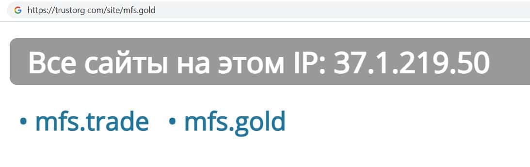 Мы проверили айпи адрес компании кидал МФС Голд с помощью сайта "Доверие в Сети". Оказалось, что на данном айпи есть ещё один проект, который является копией МФС Голд.