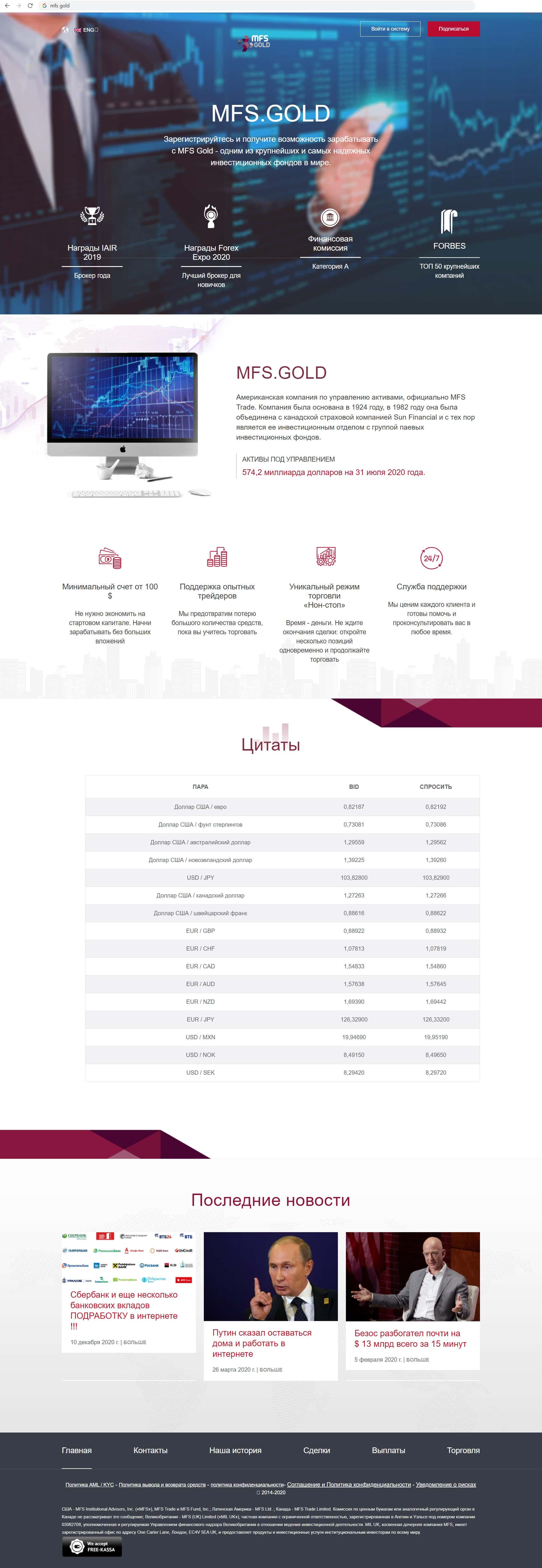 - Информация о главном интернет ресурсе конторы кидал MFS Gold