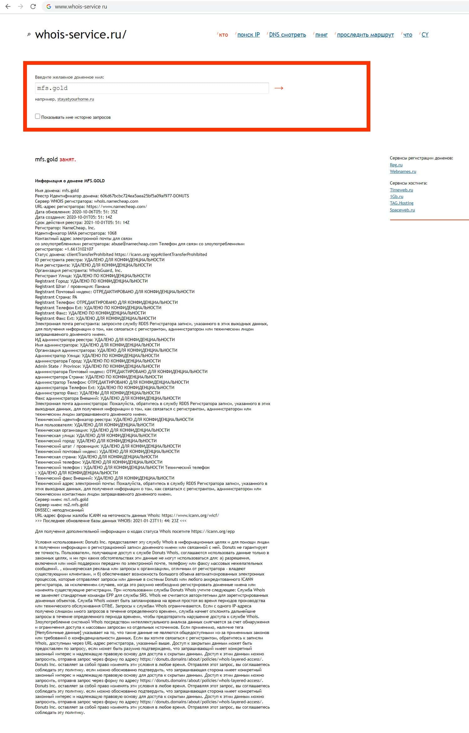 - Кто является владельцем доменного адреса конторы кидал МФС Голд?