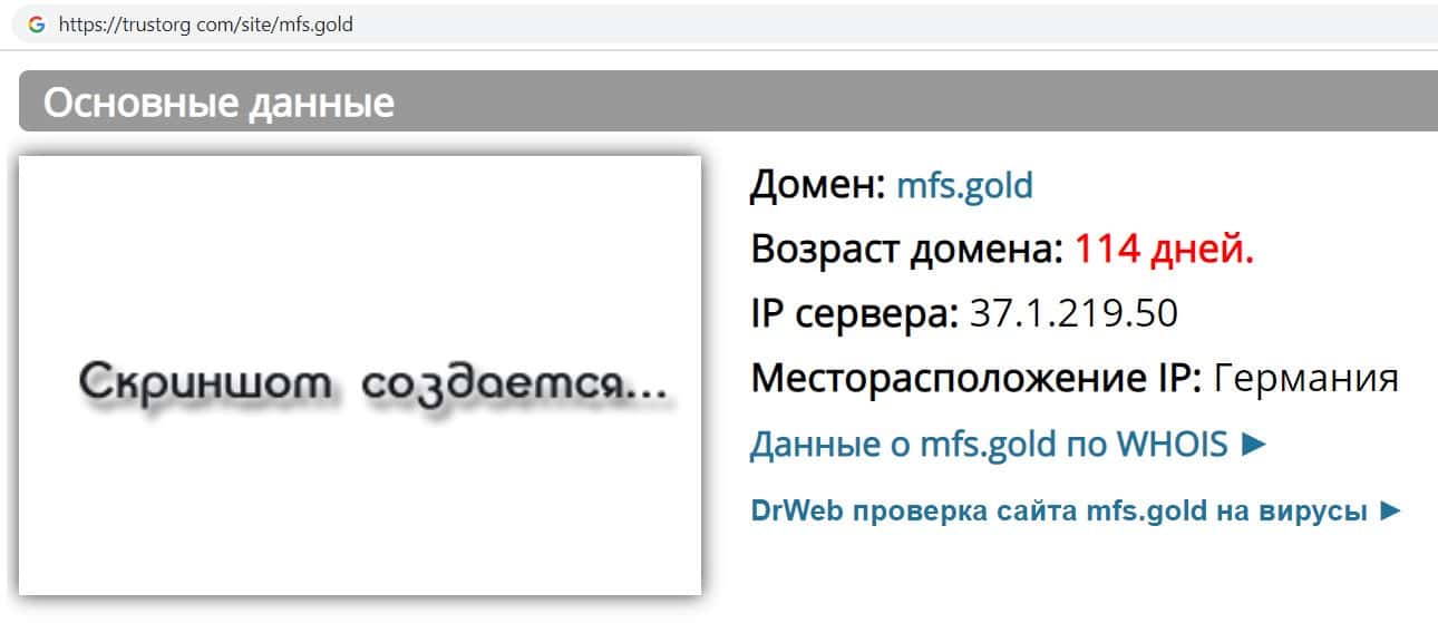 - Информация о возрасте интернет ресурса аферистов mfs gold