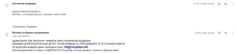 Поводом для написания данной статьи о шарлатанах Forex в лице брокерской кухни МХ Трейд стала жалоба от одного из пострадавших клиентов сей конторы. Которого лишили эти мошенники денежной суммы в размере 1200$. Человек столкнулся с невозможностью вывести собственные депозит из этой явно жульнической организации. Далее приводится скрин жалобы.