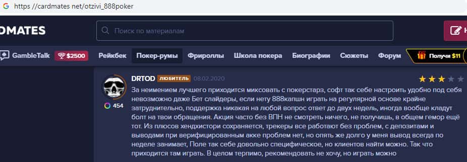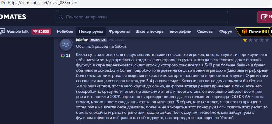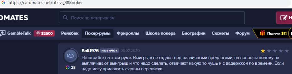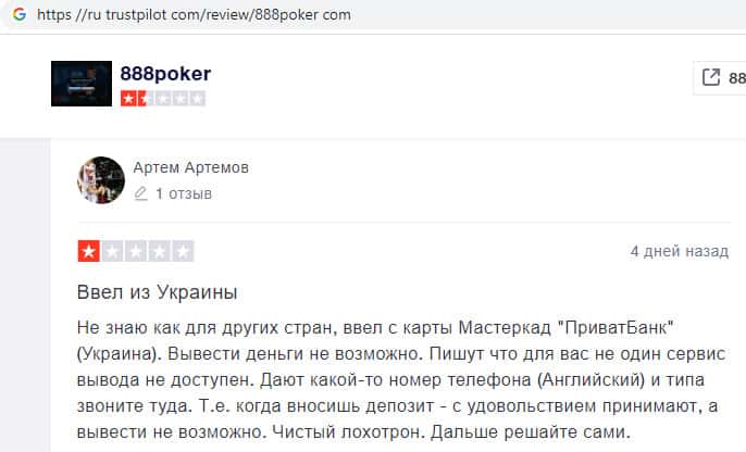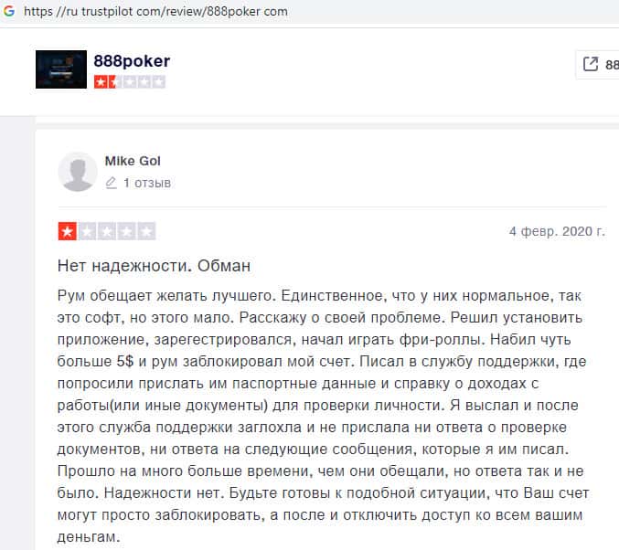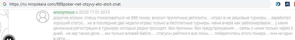 Еще один отзыв недовольного пользователя после попыток играть на лживой платформе My888Poker Ru