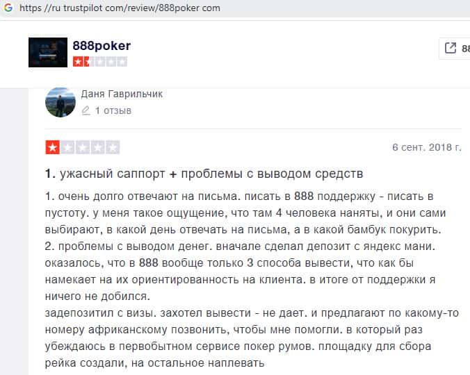Негативный комментарий клиента в сторону шарашкиной конторы My888Poker Ru