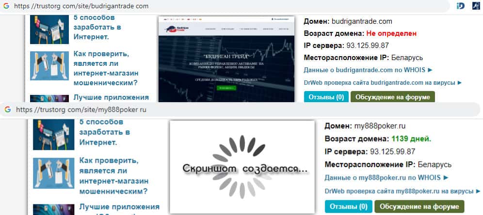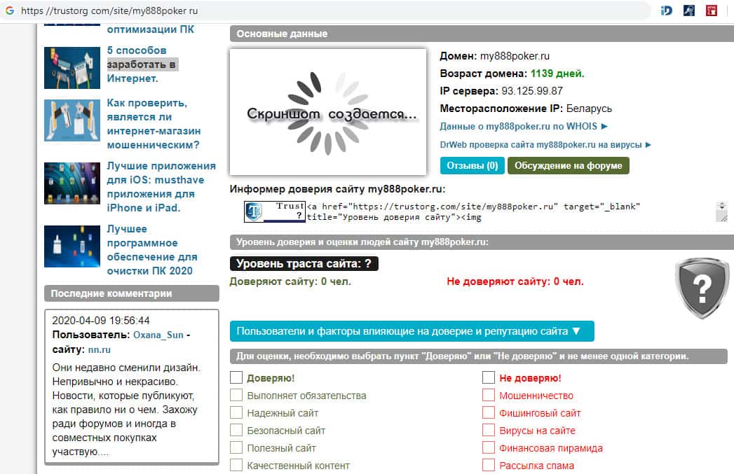 Также нам стало интересно сведений, которые касаются домена жульнической конторы My888Poker Ru, у которой согласно уважаемому веб-порталу trustorg com, ip адрес такой же, как у другой сомнительной компании BudriganTrade. Эта афера была проведена с целью экономии, чтобы не платить даже лишнего за хостинг своих лохотронов.