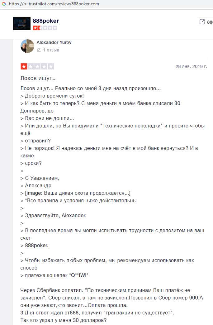 - Еще один отзыв недовольного клиента от сотрудничества с ворьем из My888Poker Ru