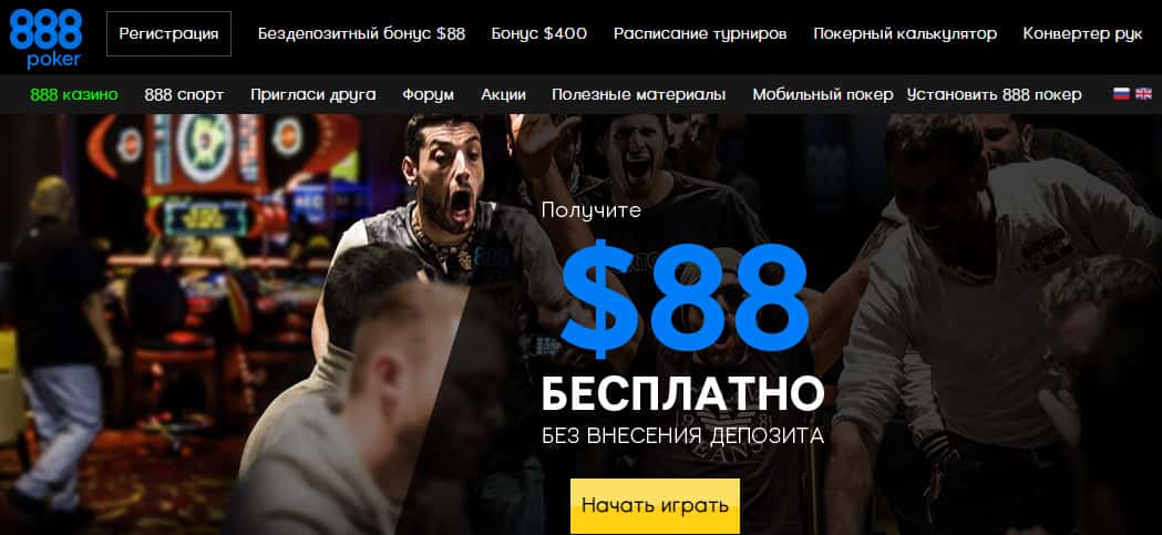 Начинается ресурс у лохотронского покер-проекта My888Poker Ru вполне ярко и обнадеживающе: уйма молодых, азартных ребят в казино, которые воодушевлены предстоящей игрой. А еще больше привлекает бесплатная замануха, которая окажется полным фиаско: получите 88$ бесплатно без внесения депозита.