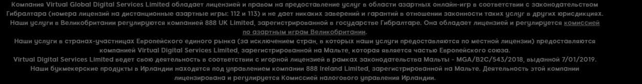 Что касается лицензии на оказание услуг мошеннической конторой Ми 888 Покер, то непосредственно сам документ со всеми печатями и необходимыми атрибутами, подтверждающими ее действительность, на веб-сайте нет. Написано, что их деятельность лицензирована комиссиями на Мальте, Гибралтаре, Ирландии и Великобритании.