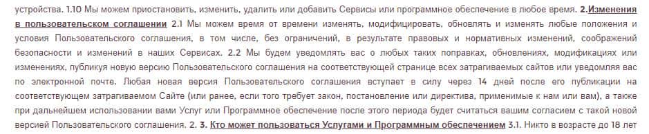 В пункте 2.1. соглашения говорится о том, что махинаторы My888Poker Ru вправе можем периодически изменять, модифицировать, обновлять и изменять любые положения и условия договора, в том числе, без каких-либо ограничений. Очень интересный пункт, который ограничивает интересы клиентов, играя против них во всех ракурсах.