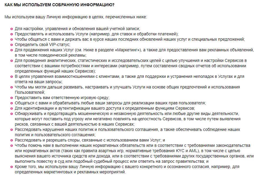 На следующей картинки перечислен целый перечень, для чего и как используют махинаторы из шараги My888Poker Ru личные и конфиденциальные данные о своих игроках: для предоставления услуг, для поддержки в курсе последних событий и новинок и так далее. Но основная причина - слив денежных средств своих трейдеров и дальнейший вывод в офшор.