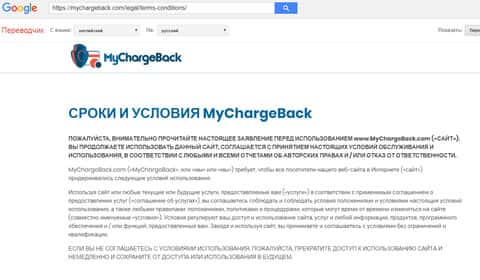 Начинаются условия сотрудничества шулеров Ми Чардж Бэк с информации о том, что пользователи должны соглашаться с данными условиями фактом использования сайта мошенников MyChargeBack. В ином случае жулики Ми Чардж Бэк просят вас покинуть данный сайт.