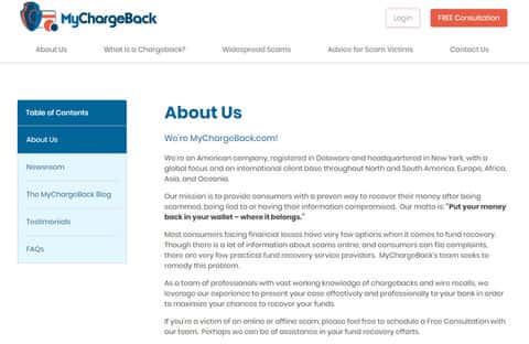 При посещении сайта шулеров MyChargeBack вы можете увидеть типичный, для данного вида разводов, сайт, на котором аферисты Ми Чардж Бэк с первых разделов сайта начинают лепетать об очередной уникальной команде юристов, которые могут вернуть у брокеров что угодно.