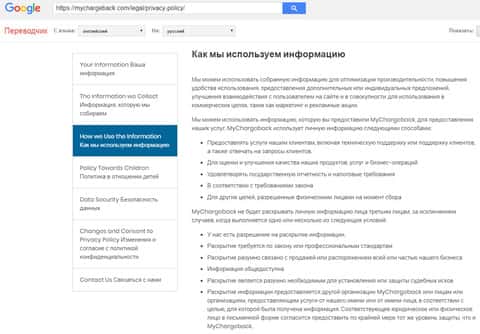 Завершается политика конфиденциальности мошенников MyChargeBack информацией о том, как используют вашу информацию аферисты Ми Чардж Бэк. Однако из-за отсутствия конкретики можно сделать выводы, что реальные условия будут прописаны в контракте, а не здесь.
