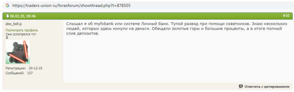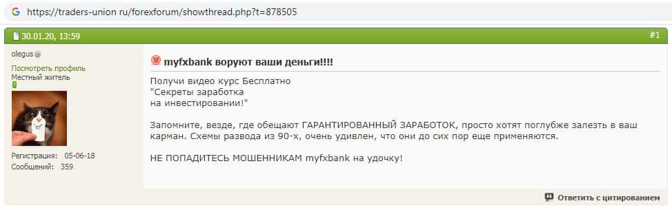 - Отзывы о фейковой конторе MyFxBank, ныне присутствующие в сети-интернет