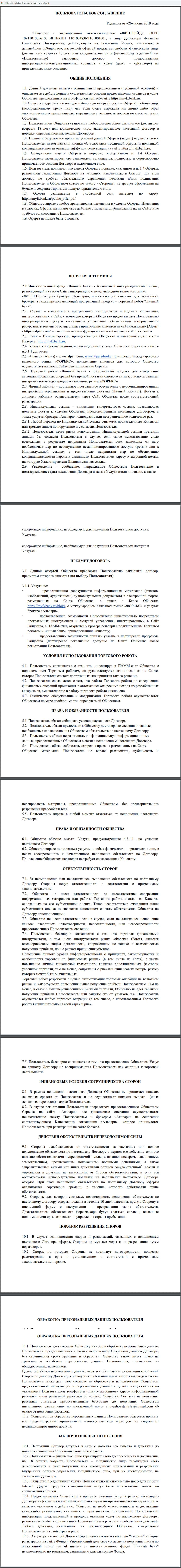 - Пользовательское соглашение на сайте скам-организации Ми ФХ Банк