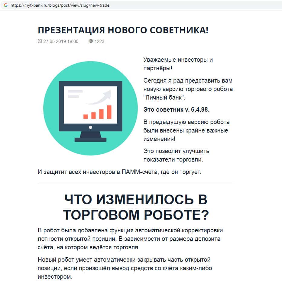 - Аферисты Ми ФХ Банк предлагают воспользоваться торговым роботом