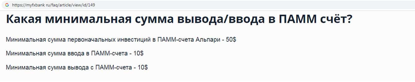 - Минимальная сумма вывода средств на сайте MyFxBank