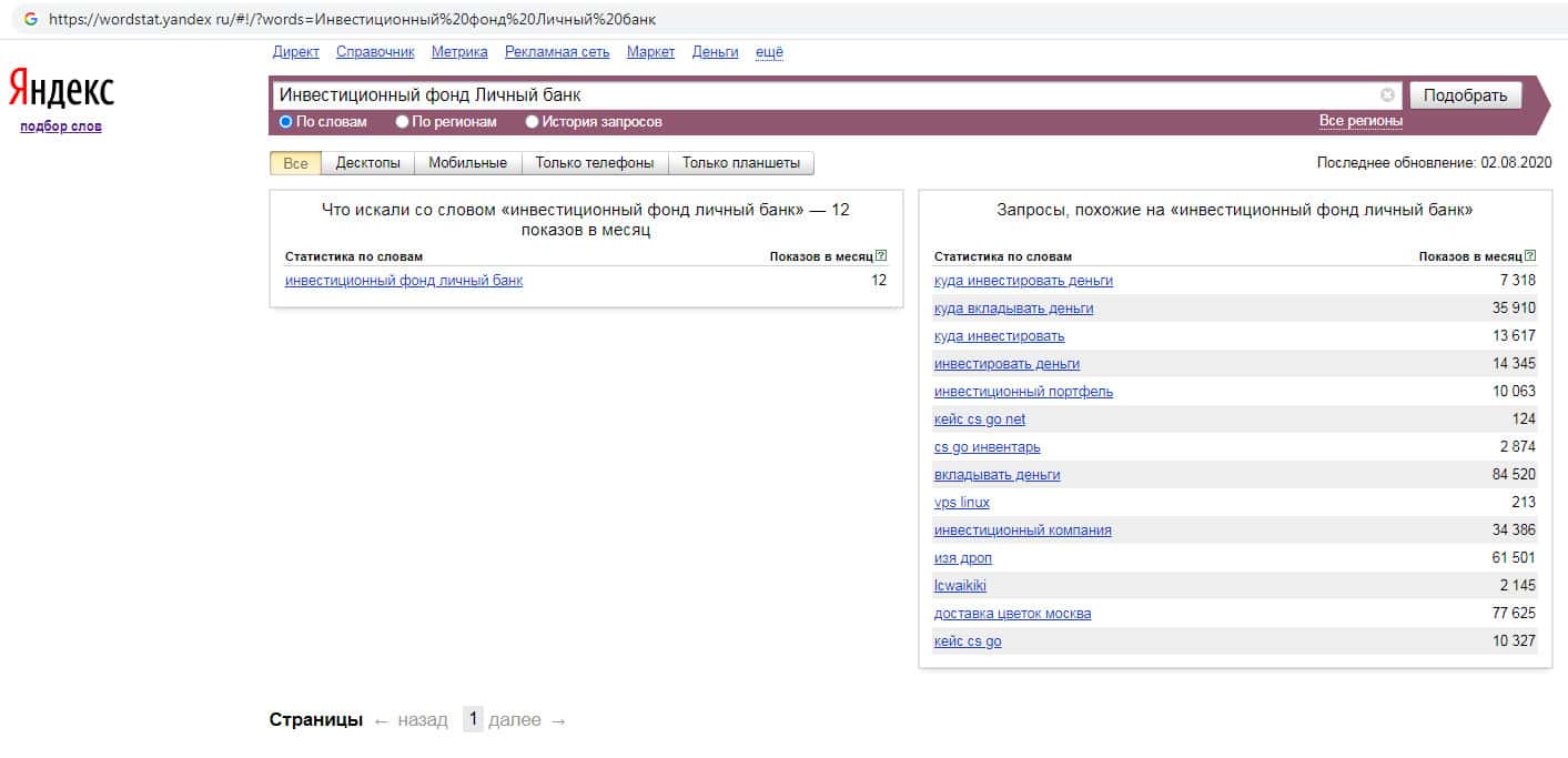 О брендовых запросах полного названия окмпании на русском языке "Инвестиционный фонд Личный банк" на wordstat yandex ru также есть данные, 12 показов за месяц.