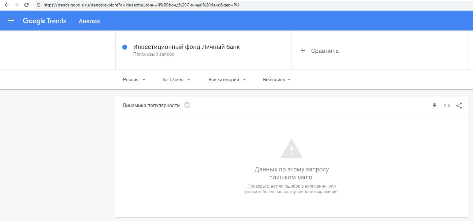 Вероятнее всего никто не искал бренд "Инвестиционный фонд Личный банк" в поисковике Google, поскольку он не пользуется популярностью.