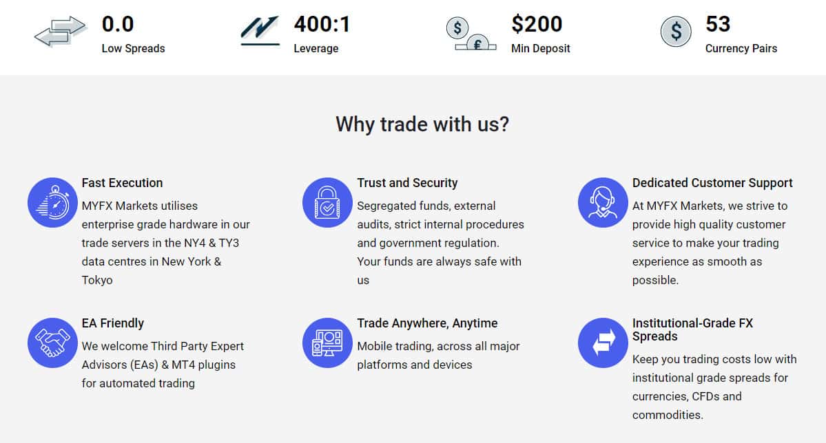 Далее на сайте у проходимцев Ми ФХ Маркетс следует довольно стандартный и банальный раздел, в котором аферисты Myfx Markets перечисляют свои довольно сомнительные преимущества, на основании которых мошенники Ми ФХ Маркетс будут нагло разводить наивных клиентов. Ниже вы можете увидеть следующий раздел сайта шулеров Myfx Markets.