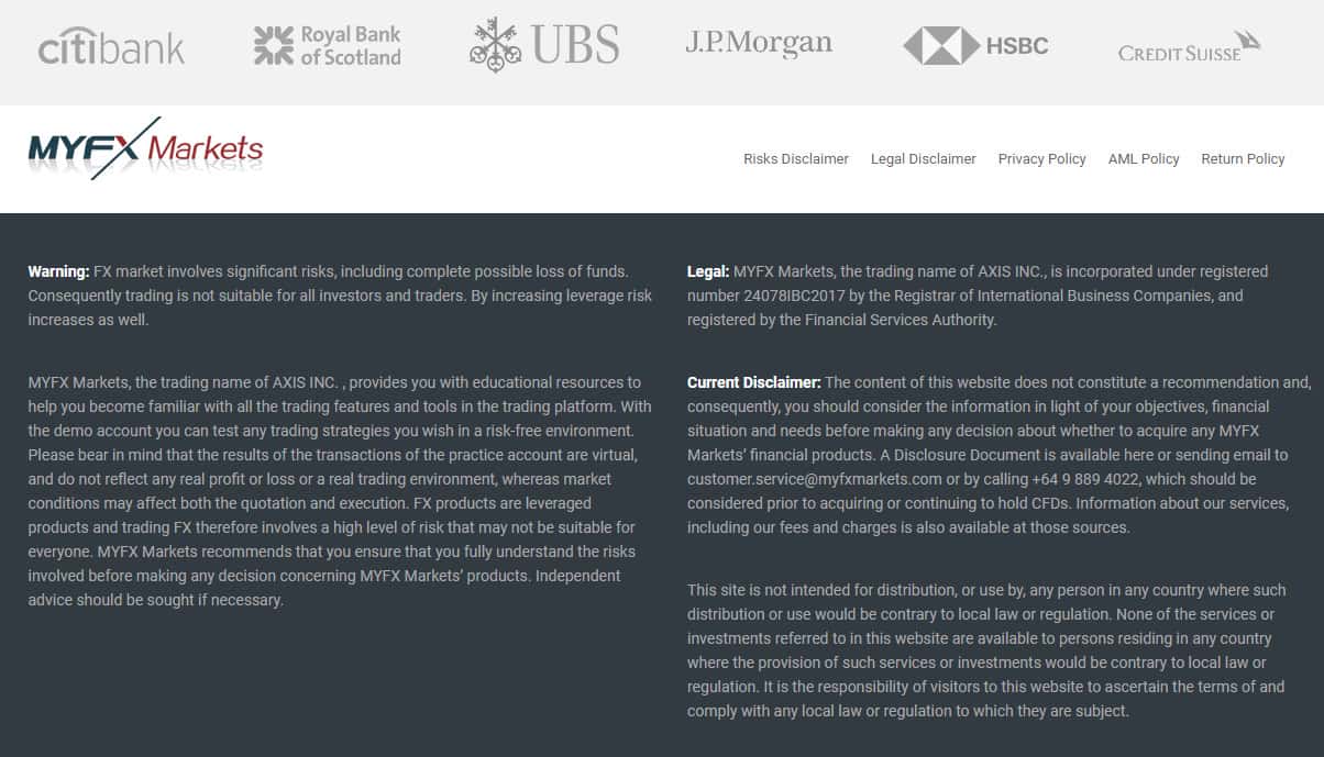 Завершается же сайт у аферистов Ми ФХ Маркетс довольно стандартно и ожидаемо, а именно отказом от ответственности мошенниками Myfx Markets за убытки наивной клиентуры, которые связаны с данным подвальным сайтом. На изображении, расположенном ниже, вы можете наглядно увидеть окончание сайта проходимцев Ми ФХ Маркетс.