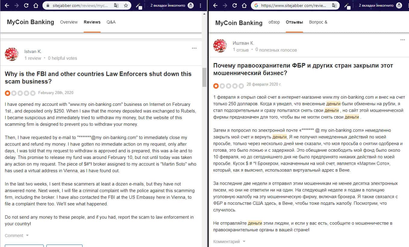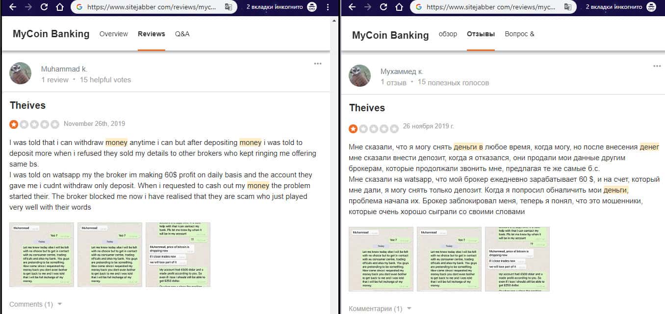 - Еще один пользователь обвиняет жулье MyCoin-Banking в мошенничестве