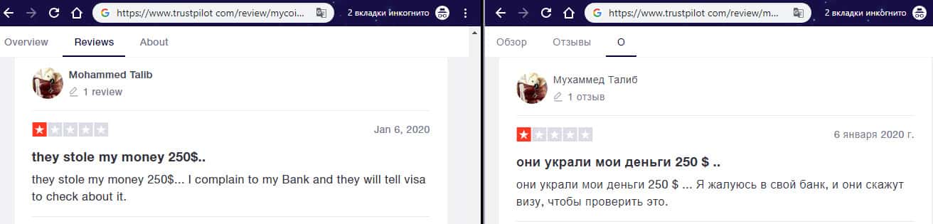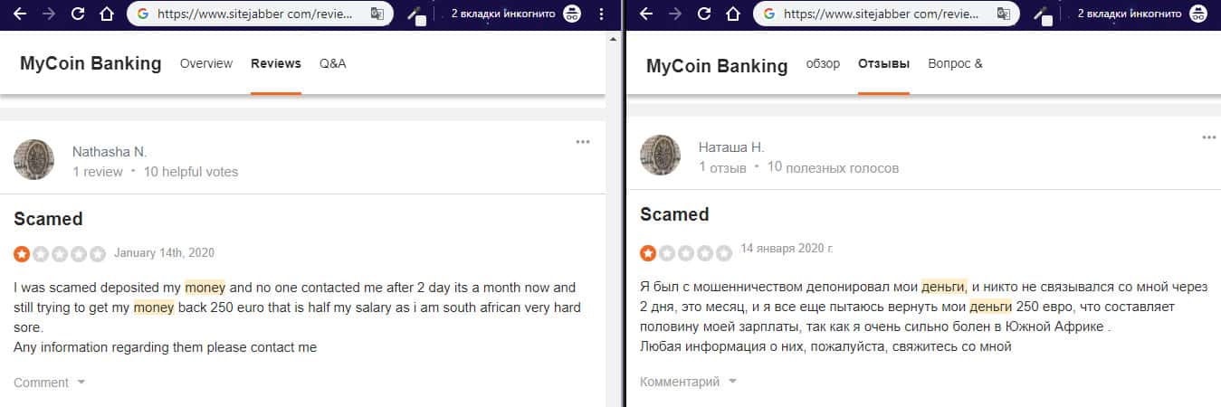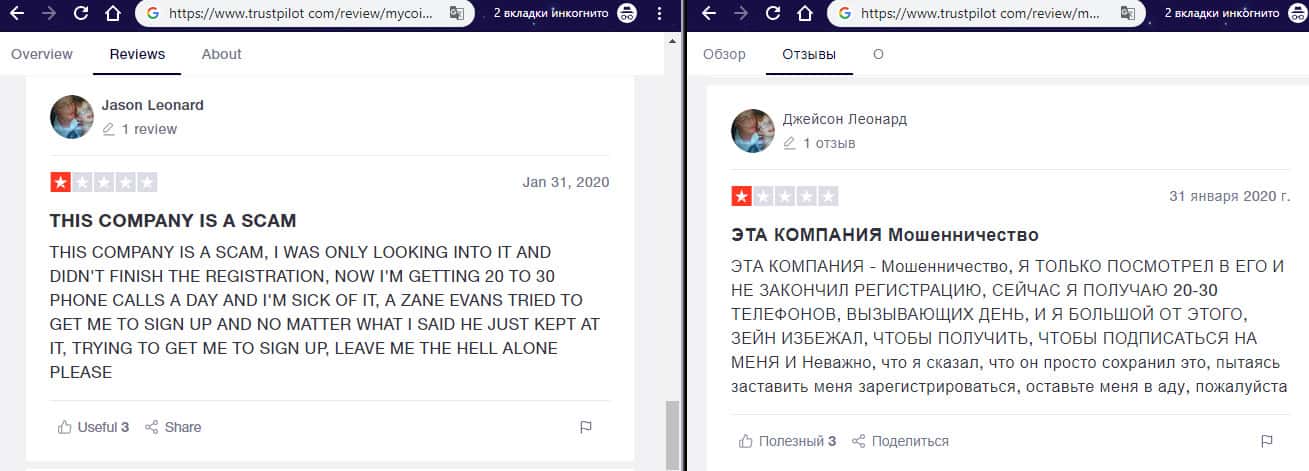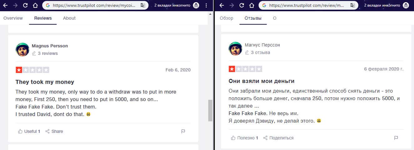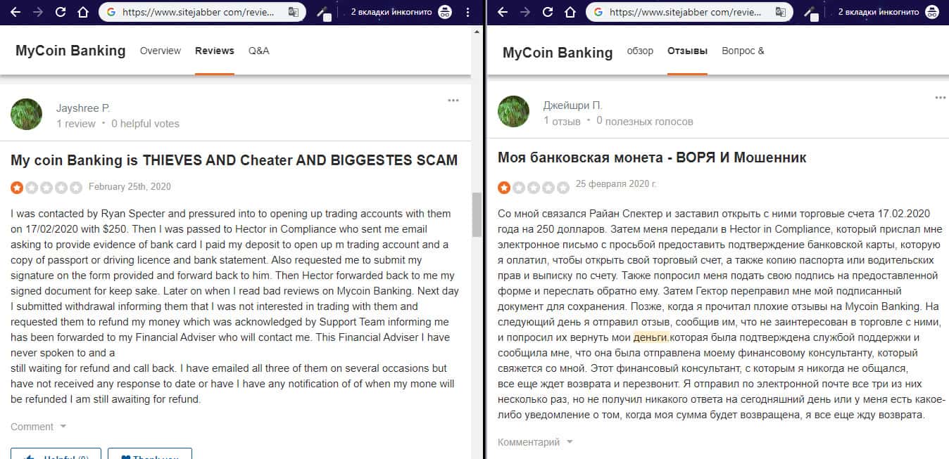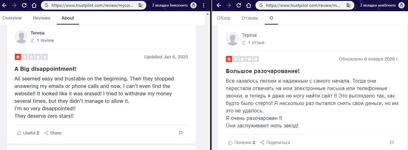 - Негативный отзыв об аферистах MyCoin-Banking с веб-сайта трастпилот ком