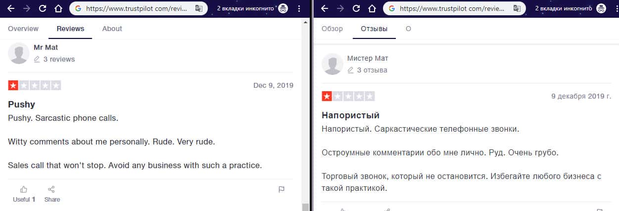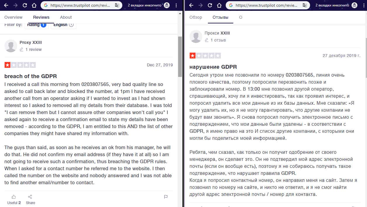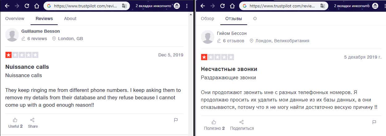 На изображении, расположенном ниже, вы можете наглядно увидеть и прочесть еще один реальный негативный отзыв об аферистах Ми Коин Банкинг с веб-сайта трастпилот ком, который связан с тем, что шулера MyCoin-Banking нагло обзванивает пользователей в попытке завлечь их в свою подвальную контору для дальнейшего развода пользователя на деньги.