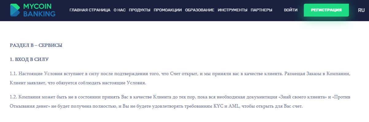 - Условия политики конфиденциальности проходимцев MyCoin-Banking