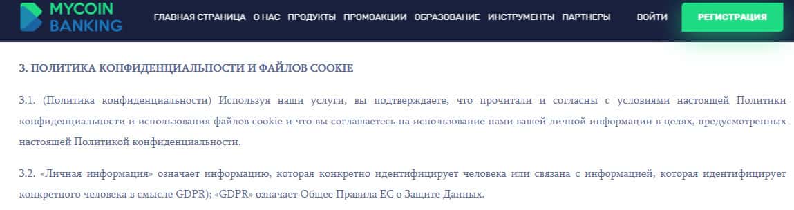 Условия политики конфиденциальности проходимцев MyCoin-Banking