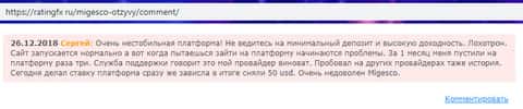 Еще один отзыв о лохотроне Мигеско с сайте ratingfx ru