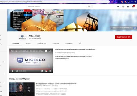 Для публикации различных рекламных видеороликов аферисты Мигеско обзавелись страницей в социальной сети YouTube, на котором очень низкое количество подписчиков, что совсем не соответствует заверениям аферистов на Migesco о высокой популярности их мошеннической конторы.