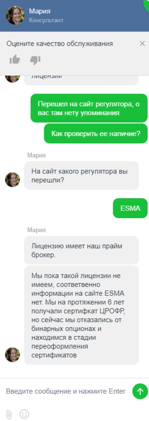 При попытке выяснить о наличии лицензии или регулирования непосредственно у представителя аферистов Migesco, наша попытка не увенчалась успехом и оператор просто начал заверять нас в том, что шулера Мигеско находятся в стадии получения лицензии, и в текущий момент ее нету.