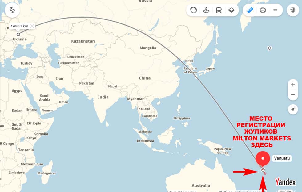 Крайне хитро умудрились припрятать шулеры из Милтон Маркетс похищенные деньги - все средства находятся весьма далеко, а именно - в Вануату. Вывод средств в офшорную зону - явный признак скрытия нелегальной деятельности. Их адрес: Транспасифик Хаус, шоссе Лини 2-й Фл, Порт Вила, Вануату.