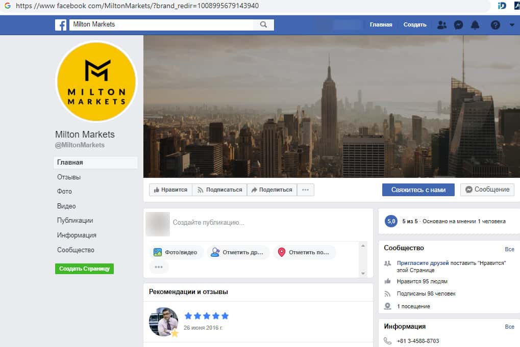 - Жулики из брокерской конторы Милтон Маркетс ведут активную деятельность в социальных сетях
