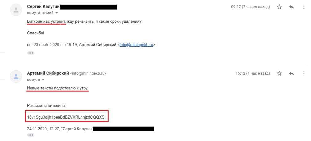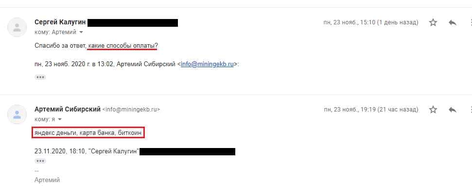 Далее в переписке идёт речь о том, что пользователя устроила сумма и он спрашивает отзовик MiningeKB Ru каким способом произвести оплату за удаление негатива.