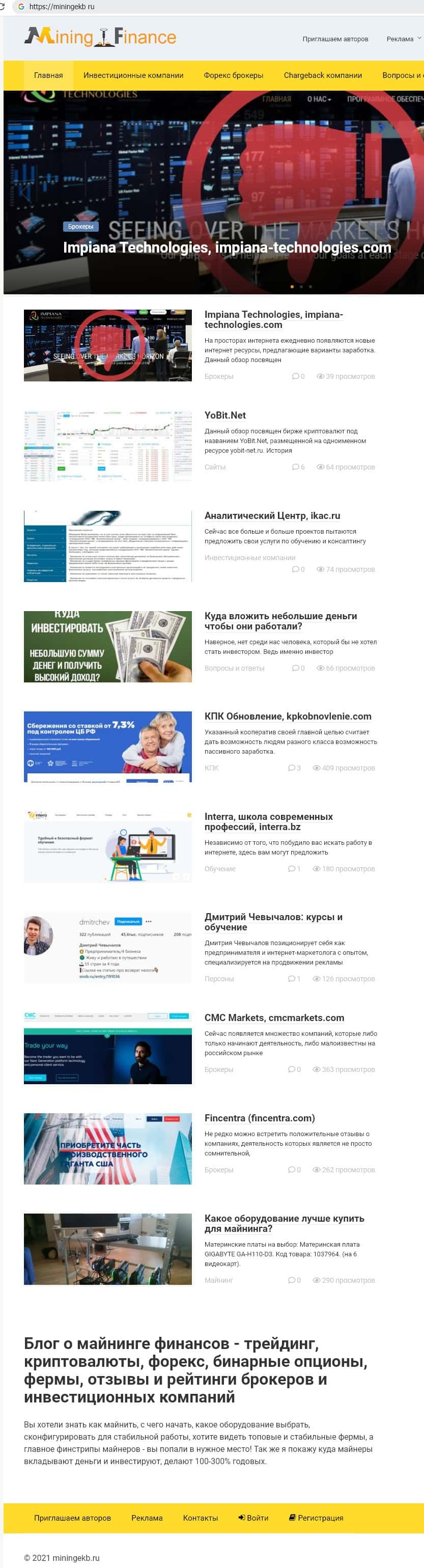 - Знакомство с главной страницей мошеннического проекта MiningeKB Ru