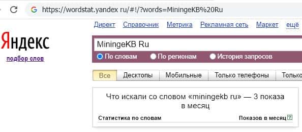 Анализ поисковых запросов в системе Яндекс показывает низкую осведомленность и заинтересованность пользователей сети в сомнительных сервисах жуликов MiningeKB Ru.