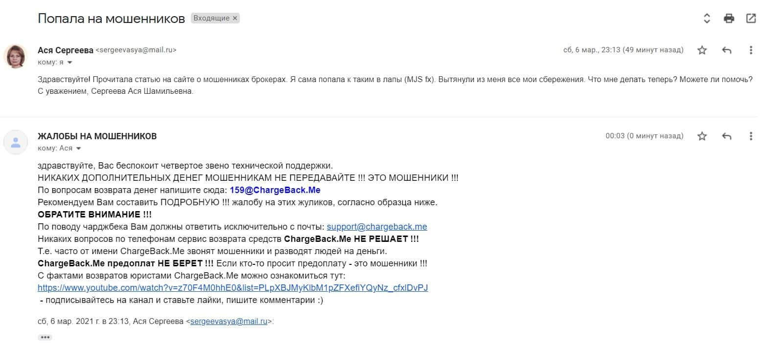 В том случае если мошенники из MJS FX и Вас обманули, то в такой ситуации обязательно напишите про это нам. Сообщите Ваш e-mail в форме обратной связи ниже, и с Вами установят контакт.