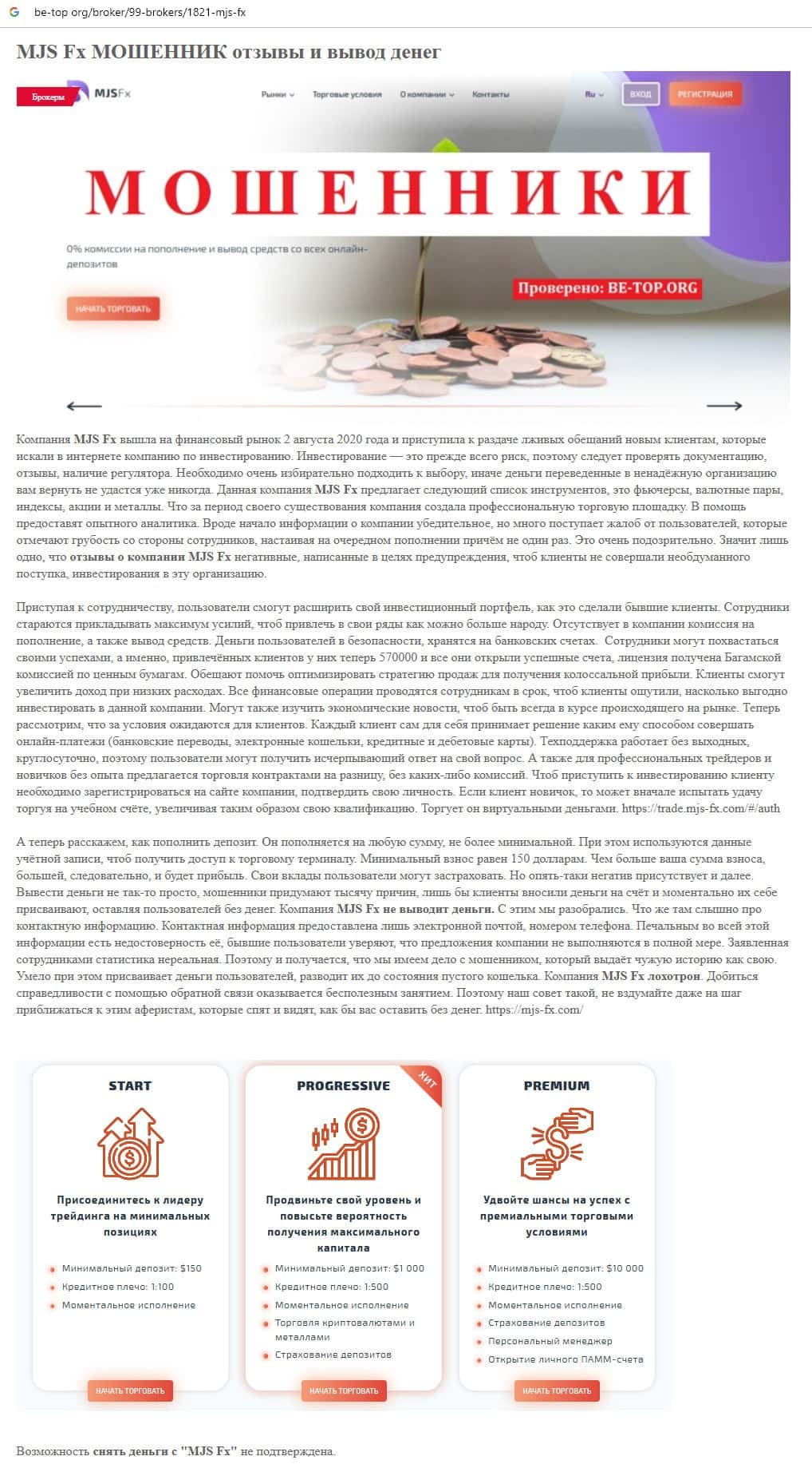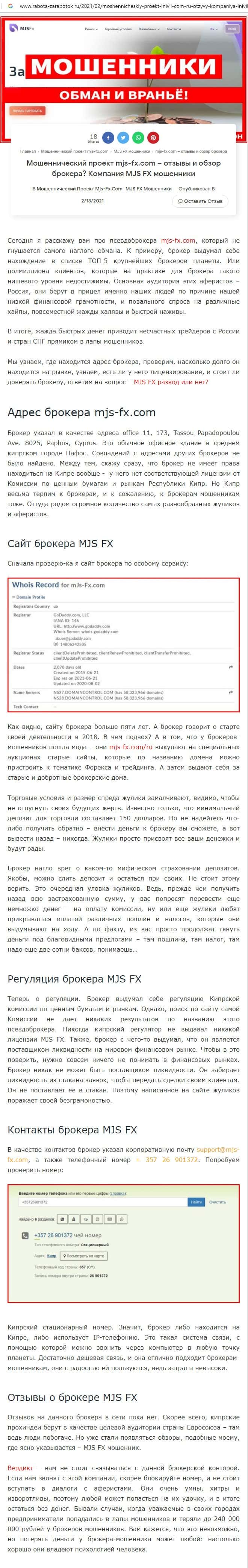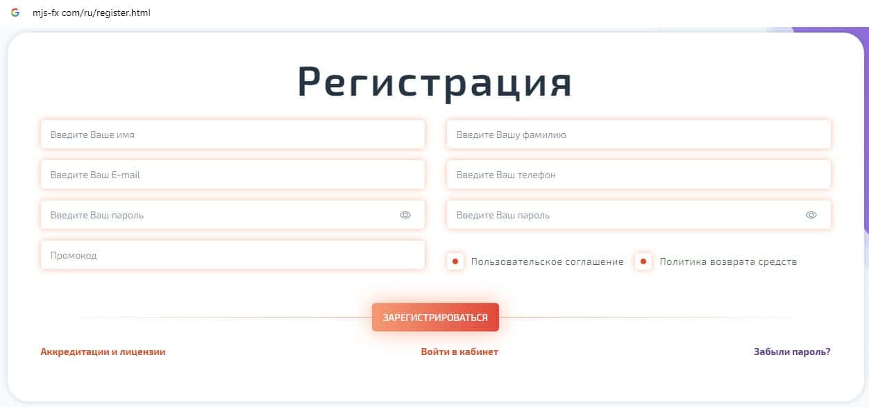 mjs-fx com - официальный веб-сервис жульнической организации ЭмДжейЭс ФХ
