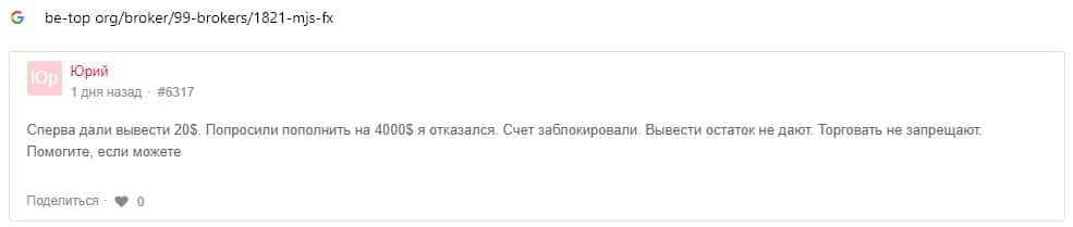 - Отзывы о мошенничестве конторы MJS FX, ныне присутствующие в сети