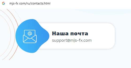 Обманщики MJS FX на своем официальном интернет-ресурсе указывают адрес электронной почты, а именно: