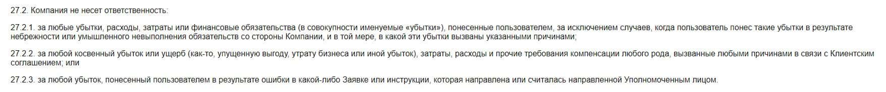 Согласно тому, что аферисты пишут в соглашении, скам-брокер ЭмДжейЭс ФХ не несет никакой ответственности за не полученную прибыль клиентом, а также за возможные убытки.