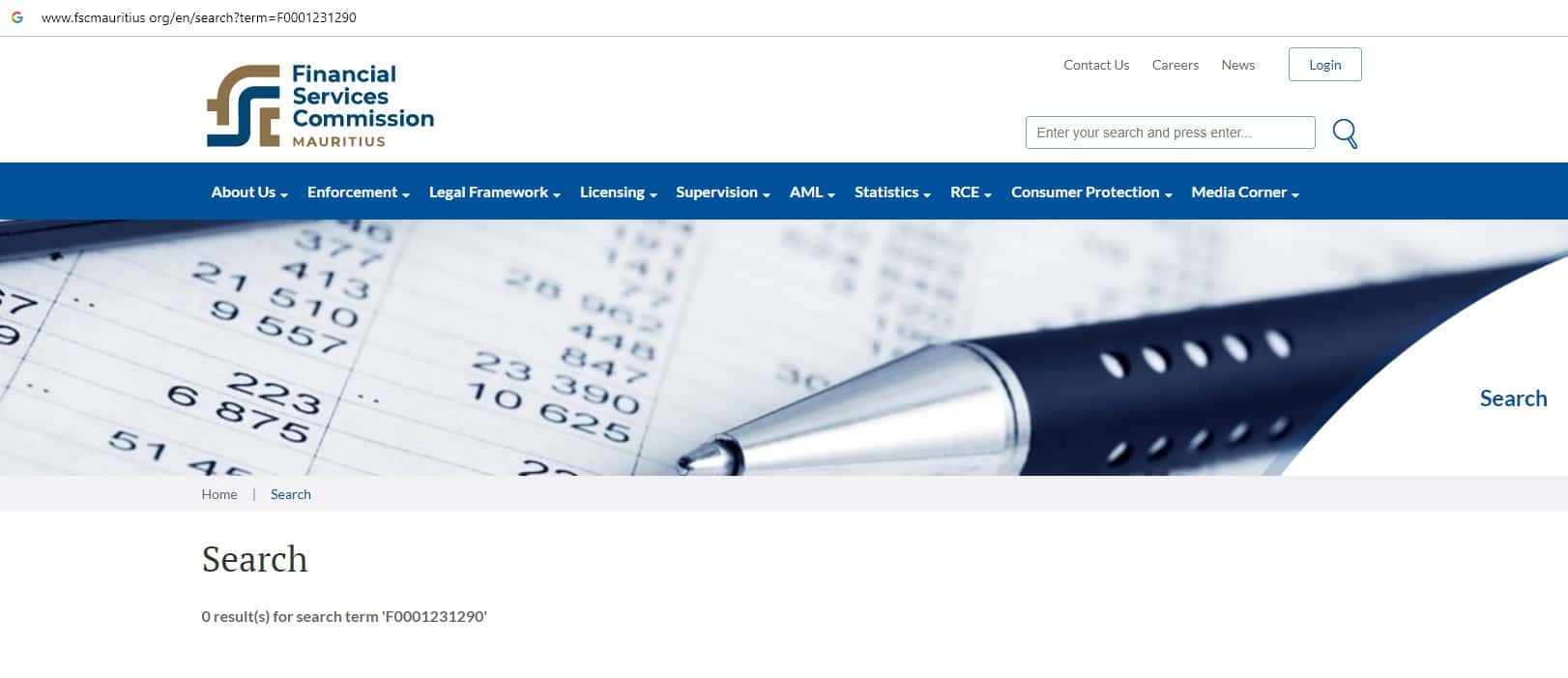 На официальном веб-сервисе комиссии по финансовым услугам Маврикий fscmauritius org нет никакой информации об указанном регистрационном номере на сайте скам-брокера MJS FX.