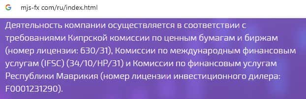 Информация о регуляции мошеннической конторы ЭмДжейЭс ФХ