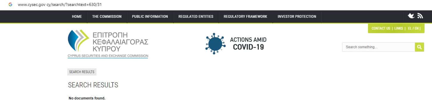 На официальном веб-портале комиссии по ценным бумагам и биржам Кипра cysec gov cy также отсутствует информация о лицензии скам-компании ЭмДжейЭс ФХ.